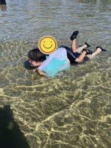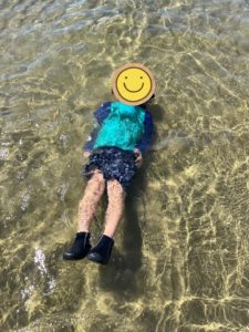 海水浴では、各事業所合同で父母ヶ浜に行って来ました🌊🌊 その日は満潮で普段とは違い、有名な“映えスポット”が一変し海水浴出来る程の水位の箇所もありました。流れも穏やかで絶好な海日和でした✌️元々が浜なので足場も悪くはなく、安心して楽しめる環境でした!潮が引くと生き物も沢山姿を現しこんなにもいることに驚きでした😲子ども達からすればそれだけで楽しみがいがあるものです😎着いて注意事項を説明し終えると、直ぐに砂浜から海辺に一目散に駆け出しました🏃♂️💨どの子も砂浜に見向きもしなかったです(笑)子ども達は泳いだり、水を掛け合いしたりして色んな楽しみ方をしていました。水分補給もこまめに行い、楽しい中にも安心・安全にと言うことをモットーにイベントを企画しています!休憩が終わると、待ちきれない様子でした😊一人が生き物に目を向けると、皆がそれに注目し生き物探しがスタートしました!!カニは横歩きですが、止まったり走り出したりの緩急があるので、子ども達も中々に翻弄されていました😂更に慣れてきたら、上級編の魚を捕りに行く子もいました。魚を手で取るのは至難の業でカニとは一味も二味も別格でした💦子どもたちが必死に頑張っている姿を見ると、職員として・・・いや1人の大人として童心に戻り助けたい気持ちが出てきました(笑)何とかの思いで捕まえると、子どもたちは目を光らせ、何度も観察していました☺️