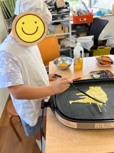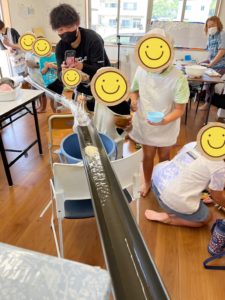 今年の流しそうめんでは、アール主体で本腰を入れて取り組んでくれました✨今年の夏を盛り上げようとやる気に満ち溢れている職員も多く、流れる所を一つ設置するとどんどんと繋げたい欲が出てきました。最終的に入り口を突き抜けてしまいましたが、子どもらからは「えぇーー!凄い‼️長すぎやろ(笑)」と驚きとツッコミをいただきました😎職員としては、嬉しい限りです。勿論、速すぎたらただそうめんが流れて行くのを見るだけになってしまうので、スピードが緩くなる場所も考えています🫰加えて、そうめんだけでも良かったのですが、少し味気無さもあったので、おかずを一品二品子ども達と一緒に作りました!錦糸卵ときゅうりの和え物も添えました。また、そうめんと盛り付けがまた絶妙で「楽しいし美味しい!」と感想を寄せてくれました。