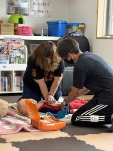 今年の7月は、職員研修で救急救命について外部の講師の方をお迎えし出前講座をしていただきました!AEDの使い方から心肺蘇生に至るまで分かりやすく学べました。🚑⛑️また、適切な意識確認の具体的なポイントであったり、回復姿勢についてだったりを実演していただきました。通っていただいている利用者様を預かる立場として、体調管理や緊急時についての知識は凄く大事になってくるので、毎年定期的に実施しております。何度も繰り返し繰り返し行うことで、より確かな対応に繋がっていくと思います。保護者様がこれからも安心してご利用出来るように職員一同尽力して参ります🙇♀️🙇♂️