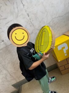 9月6日に今年も飯山高校の文化祭に行って来ました♪♪毎年恒例で良く行かせていただきますが、いつも期待を超える出来栄えで日が近くなるにつれて、楽しみにしておりました🌟行く時には既に遠目からでも校内が賑わっていることが分かる程盛況でした‼️子ども達も車窓から「人たくさん!多い!😲」校内の催し物が凄く手が込んでいて、テーマとしては、「マリオ🏃🍄」の世界観が上手に表現されていて、子ども達と一緒に迷い込んだのかな(・・?)と言う気分で進むごとにワクワク感が最高潮に達しました🥳土管から?BOXから、ブロックや登場するキャラクターの細部まで拘って作られていました!食事もバリエーションが豊富でメニューを見るだけで、満足してしまう程悩む時間が楽しいものでした😋参加した縁日やすごろく迷路、“ようこそどうぶつの森”、今話題の“オニヤンマくん”作りに至るまで盛沢山で子どもたちと一緒に楽しみ尽くしました🎉🎉 楽しかった反動で名残惜しく「まだ、遊びたーい!」と口にする子も居ました(笑)アールさんでは、子ども主体でどの順番で回りどのタイミングで昼食を摂るかまで、皆と相談して決めました🗣️