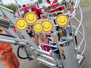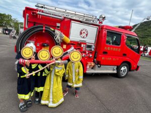 9月27日には高松市の生島町にある防災センターで、“香川県防災フェスタ2025”を企画されており、そちらに参加してきました。到着して直ぐにヘリコプターの降下訓練をしており、目と鼻の先で演習しているのを見学出来ました👀本当にまばたき厳禁なほど凄く迫力があり、臨場感がありました🚁子ども達も頭上に近い所でヘリコプターがホバリングでしていると、「風が強い~🌀飛ばされる~(>_<)」などお友達とも見つめ合い、お話をしていました。災害車両の多くも小さい子は一つ一つに釘付けです(笑)ましてや、制服の着用もでき気分が上がること間違いなしです😳実際の消防隊員によるロープの降下訓練はとても速く、見ている男の子からは「俺な~消防士になってはしご車に乗るんで❗」と思い思いに夢を語ってくれました!ロープは他にもあり、例えばロープ綱渡り体験があり、現役の消防士の方が付き添ってくれて、低い位置から横から横に移動させていただきました。子ども達は普段関わることがない人達を前に新鮮だったのか、違った一面も見られました🫣その他にも小学生達は、実際の防災センターで消火器体験や暴風体験をしました。顔や髪が乱れる程の勢いでびっくりしていました😮とても学びある体験が出来ました🍀