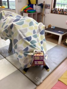 ししまい体験では、今月は獅子舞いが近くに来ていたので、それを真似てデイでも出来ないかなって思って即興でしてみました。子ども達に聞くと、「保育所や子ども園でも来て、獅子舞するんで!」と教えてくれました🦁子ども達が中に入り、音を鳴らす人と獅子の顔を動かす人、獅子の体を動かす人に分かれてしました。獅子舞は呼吸が合わないと出来ない物なので、協力が不可欠で凄く楽しみながら、練習になったのかなと思います。体の役割の人は前のお友達の様子を見てないと、動きが不自然になってしまうので、そこも含めて“楽しさ”でもあるのかなと感じます。楽しみながら学べるのが一番なので、凄く良い体験になりました。何より、子ども達が楽しく、イキイキと頑張って取り込んでいる姿は何にも代えがたいです🎞️