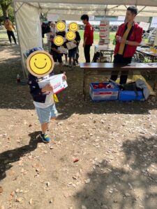 4日は丸亀城にてカメフェスに参加してきました。来た時から賑わっており大盛況でした❗紙飛行機大会が開かれており、受付で子ども達に参加するか聞いてみると、自信を持って意気揚々と手を挙げてくれました(^o^)丿そんな姿を見て、職員としては誇らしくも感じます(*^^*) いつの時代も紙飛行機は“正義”です(笑)紙飛行機一つで子どもから大人まで楽しめ、年齢を重ねてもその気持ちが色褪せることはないなぁ~と大人目線で思います🤭子どもと同じ熱量で楽しさを共有出来るのは幸せなことです🍀その後、フリースペースにてクレヨンで絵を描くスペースがありました🖍中には上手に大阪万博のミャクミャク君が画かれていました。誰が画いていたか分かりませんが、凄いクオリティーで時間が経つにつれて、ミャクミャク君が大量出現していました😮今回は車椅子を借りる機会があり、子どもを乗せて職員が押していると、それを見ていた子どもが一緒に歩くペースを合わせてくれて、寄り添ってくれたことが、凄く良い思い出になっています😢未就学児の子だったので、その年齢からすると普段遊びたいもの、見たいものを赴くがまま行くのですが、それをやめてでも寄り添ってくれた気持ちは、かけがえない物で沢山褒めました💮しばらく時間が経ち、いよいよ紙飛行機大会の時間がやってきました。一緒にどうしたら長く飛ぶ紙飛行機が折れるか考え、本番に臨みました✈️皆が思いのまま一斉に力いっぱい飛ばしました!中には凄く飛ばせられる紙飛行機を折った方が居て、惜しくも表彰は届かずでした。そのまま帰路に向かおうとした際に、放送があり本部に行くと、なんとBM賞(ブービーメーカー)を受賞していました😂子どもたちは、良くわかってませんでしたが、それでも何も無いより全然嬉しかったようで、皆でお菓子などを分け合い、楽しい時間が過ごせました👨👩👧👦