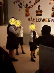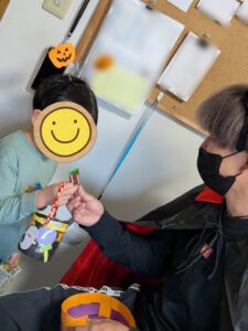 10月と言えばなんと言っても、欠かせないのはハロウィンパーティーなんじゃないでしょうか(笑)カボチャにお化けにミイラ、怖い物なら何でもありです🥶👻それに伴い、ハロウィン製作としてお菓子のカゴも作りました🧺外枠はペットボトル、持ち手は毛糸を三つ編みにしました。中のデザインはお化け👻やカボチャ🎃、などの紙を用意して、それを子ども達で考えてもらい、顔を描きました。色も顔立ちも自由です😄大人では思いつかないような、色使いであったり、優しい顔であったり皆それぞれでした☺️🫠今年は例年にはない、ふじこどもデイサービス始まって以来の大快挙を成し得ました🛠️と言うのも、普段は仮装をしておやつを食べるなど、一般的な過ごし方をしていましたが、今年は飯山高校の文化祭にインスピレーションを受け、これはふじこどもデイサービスでも取り入れたいと思ったのがきっかけです。飯高祭でお化け屋敷が人気のあまり惜しくも入れず、そのリベンジも含めた大型企画です😊それはもう職員の気合も十分です‼当日は来所する前に事前準備を済ませ、お化け屋敷がいつでも出来る状態で待ち構えていました。それから注意事項を説明し、お化け屋敷に行く運命を共にするペアを発表しました。一人だと心細い所もあるので、ペアで一緒に行動することにしました。また、行って帰るだけでは何しに来たのか分からなくなるので、前にハロウィン製作で作ったお菓子を入れるカゴをお墓の横に置き、取る時に井戸から脅かす流れで打合せをしました🤔本番は子ども達も怖がりながらも、ペアの子が居るという安心感もあり、全然臆することなく勇敢に進んで行きました💪中には少し驚く子も居ましたが、お菓子パーティーの前に先生がお化け役だったことを伝え、ホッとする子もいました☺️子どもによっては、声で先生だと気がつく子も居たほどで、不思議なくらいでした。今年のクッキングは力も入っており、オレオで作る歯のオバケが大人気でした✨また、代表取締役社長がお手製のバナナケーキ作ってくれ、子どもたちに振舞ってくれました🍌😋