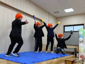 今月の一大イベントはなんと言ってもこども忘年会です!!一年の感謝を込めて、毎年恒例で開催しています🎉どの年も昨年よりも満足がいくことを目標として考え、子ども達が何よりも「楽しかった!また参加したい!」と思っていただけるように、精一杯力を出し尽くしました💦🫡企画も早い段階から何度も何度も打合せをして、「こうかな?それともこっちかな?」など思考を張り巡らせて今年も考えました🤔💭職員もこの日を迎えるのを日々楽しみにしながら過ごしてきました。当日、開会の挨拶から始まりを迎えました!種目は、段ボール積み・ボール運び・お菓子釣り・ひげダンス披露・BINGOなどを行いました。ここでは多くは書き記しませんが、どの種目も保護者様・お子様が何よりも楽しんでいただけて、会場は沢山の笑い声と幸せで穏やかな時間に包まれていました。本当に幸せなひと時でした🍀改めて、お忙しい中こども忘年会にご参加いただき誠にありがとうございますm( _ _ )m 良い思い出で一年の最後を締めくくれたのかと感じます。今年も一年大変お世話になりました🙇♀️🙇♂️ スタッフ一同より。
